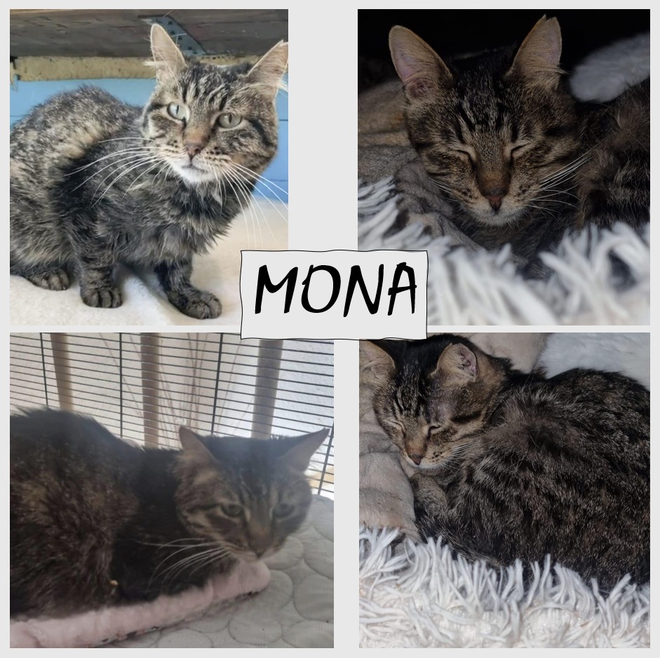 Mona wurde als ältere Katze, geschätzte 10 – 12 Jahre, übergeben. Dies entsprach aber nicht ihrem richtigen Alter. Bekannt war bis dahin nur, dass sie von der Vorbesitzerin eine Zahnsanierung bekommen hat und gegen ihre Zahnfleischentzündung mit Antibiotikum behandelt wurde. Zwei Wochen nachdem sie bei Moni eingezogen war, begannen ihre epileptischen Anfälle. Mehrere Gespräche mit der örtlichen Tierschutzorganisation und Vorbesitzerin verliefen ergebnislos – keinem war etwas aufgefallen. Erst nachdem Moni hartnäckig blieb, kam ihre ganze Geschichte heraus. Mona ist nicht alt. Sie ist jetzt erst 5 Jahre alt. Sie hatte anscheinend von klein auf unter Cluster zu leiden, doch es kam nie zu einem Anfall. In den letzten 3 Monaten bevor sie zu Moni kam (ihrem dann 5. Zuhause) hatte sie Reisen mit stundenlangen Autofahrten, wechselnden Unterbringungen, eine Zahnsanierung, mehrere Tierarztbesuche und zuletzt die Neueingewöhnung bei Moni hinter sich – das war zu viel. Die Epilepsie brach aus, mit mehreren Anfällen innerhalb 1 Woche. Mit ihrem Medikament war sie dann zunächst gut eingestellt, bis sich die letzten 5 Anfälle im Abstand von nur je 4 Wochen häuften. Ihre Behandlung wurde erweitert und sieht momentan vielversprechend aus. Ihre chronische Zahnfleischentzündung wurde bisher mit Cortison behandelt (kontraproduktiv bei Epilepsie). Auch hier besteht die Hoffnung, dass sich das bessern könnte. Es ist noch ein langer Weg. Sie ist noch nicht richtig eingestellt, aber die Fortschritte sind da!